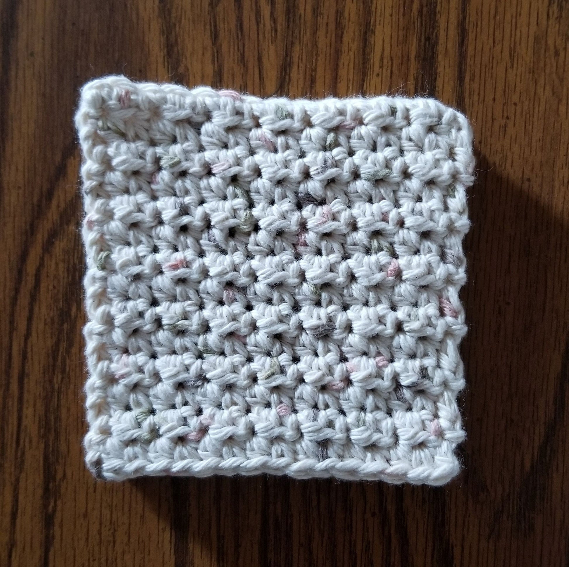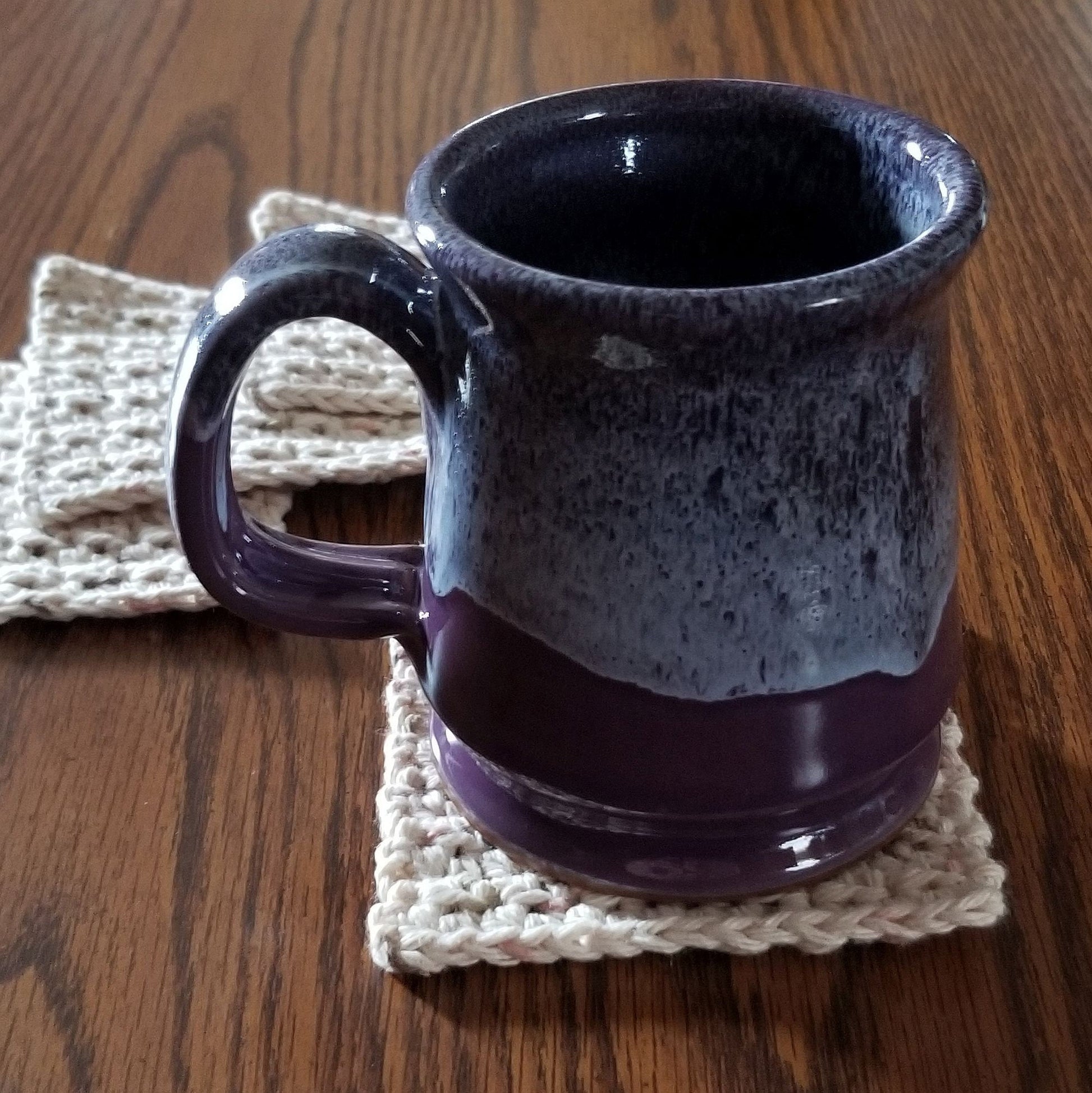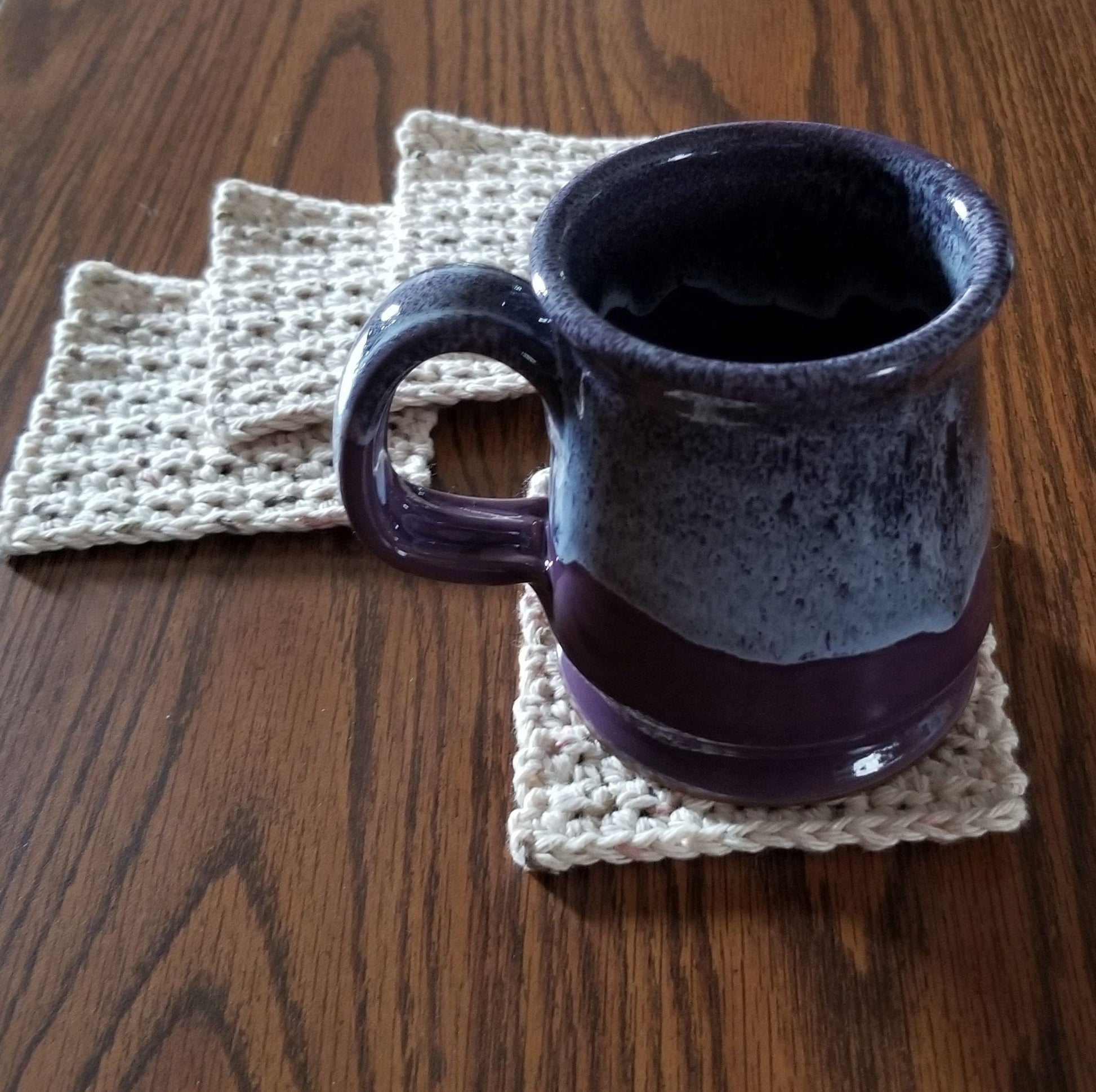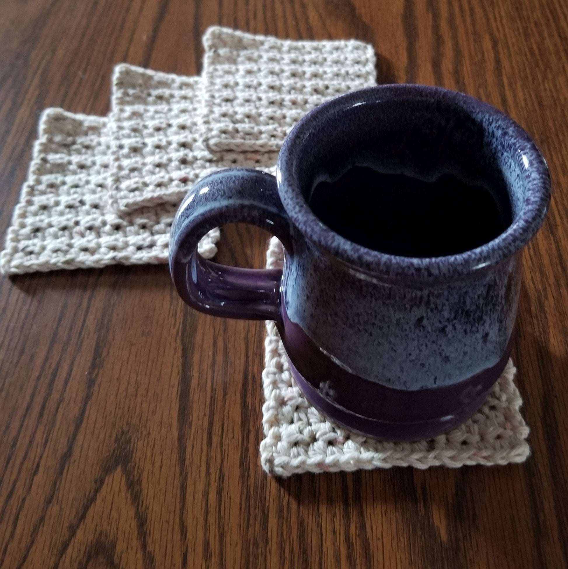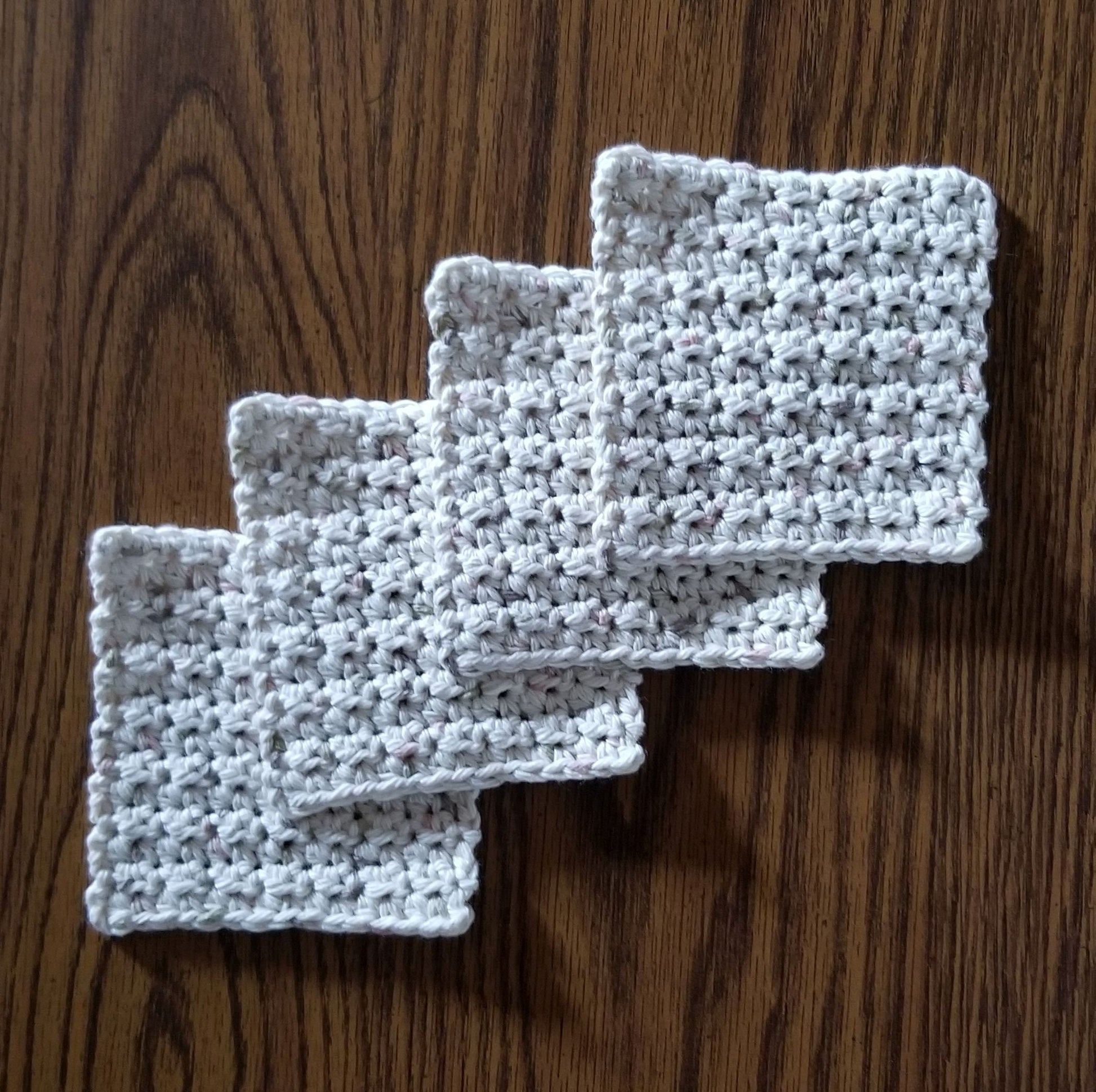 This coaster pattern is easy to read for beginners and works up quickly. They are a great use of scrap yarn.