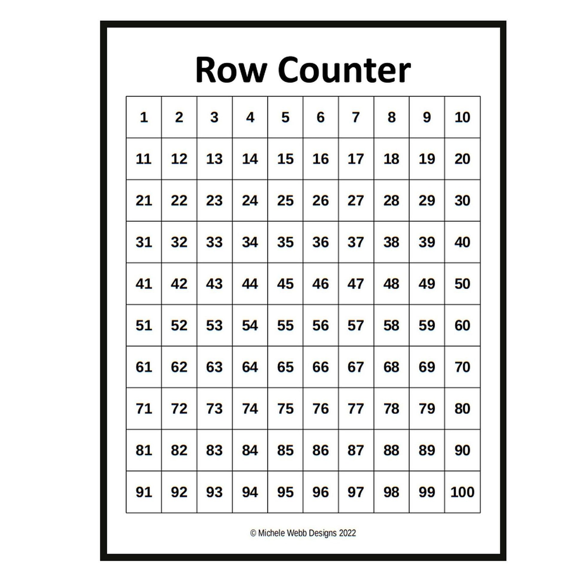 This row counter is great for tracking your rows as you work on your crochet or knitting project. Print it out and mark off the rows as you go along so you don't forget where you left off when you return to your project.