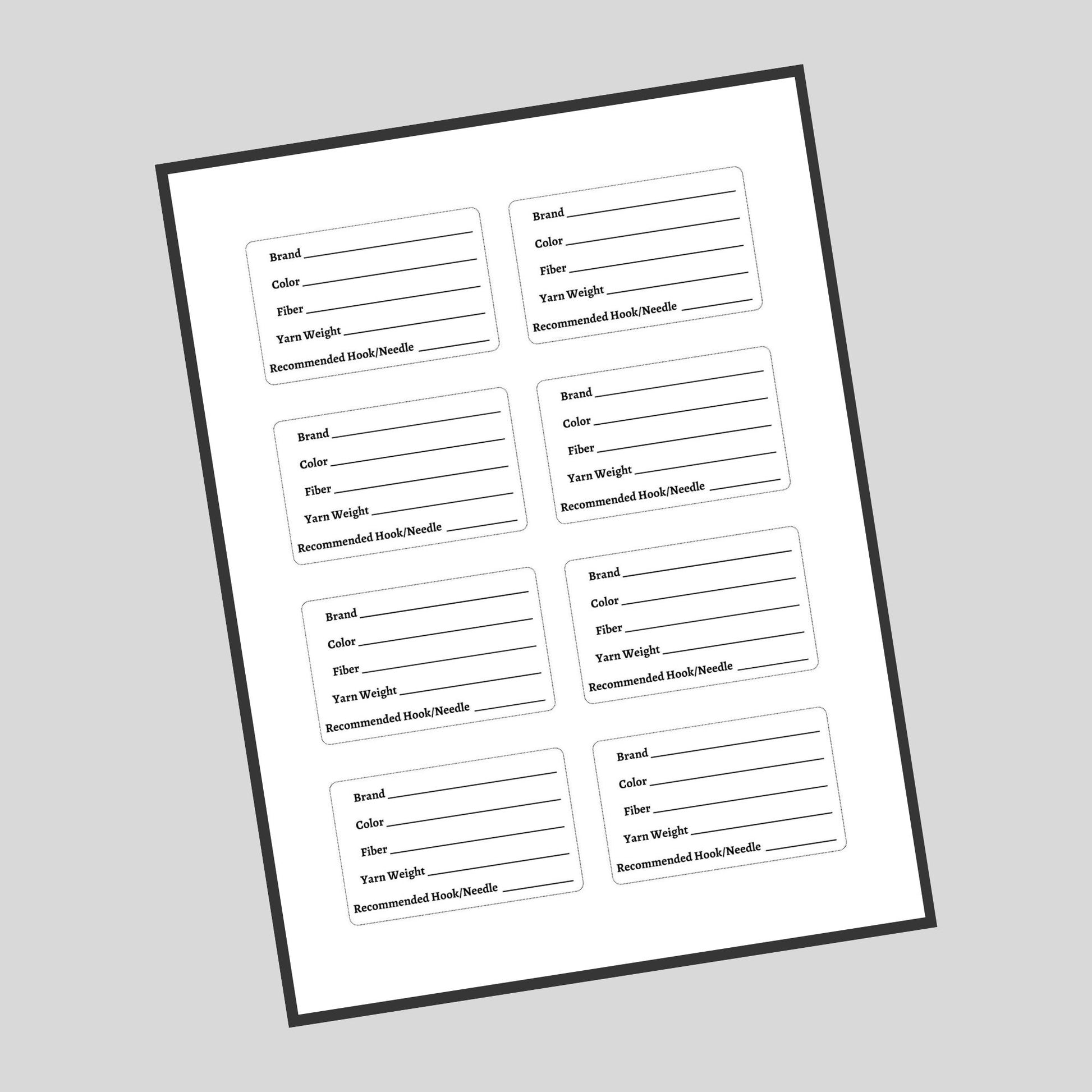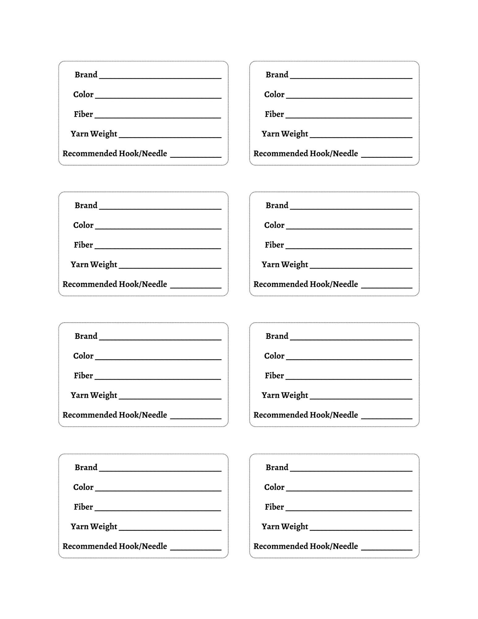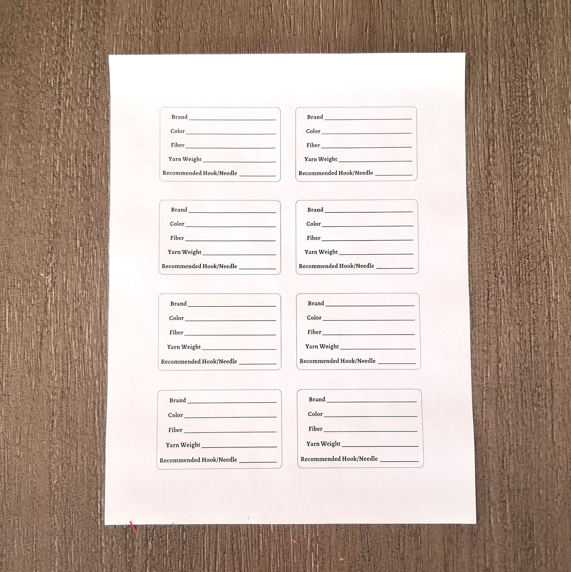 These yarn tags are great for the leftover yarn after you've finished a project. Print and cut them out, fill in the yarn information and attach with a small piece of yarn.